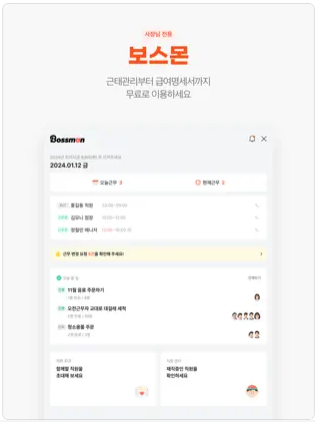 - 채용 끝, 관리 시작! 보스몬으로 직원 출퇴근과 급여를 손쉽게 관리하세요!