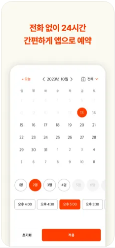 ■ 전화 없이 24시간 어디서나 온라인으로 예약 날짜, 시간, 인원 등 필요한 조건으로 손쉽게 예약 가능 여부를 확인하고 실시간으로 예약을 완료합니다.