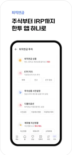 개인 연금·퇴직연금, ETF, ISA, 펀드, 채권, RP, 발행어음 등 다양한 한투 금융상품 투자