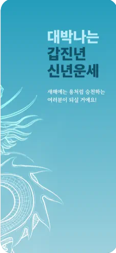- 2024년 운세, 궁금하지 않으세요?푸른 용의 해, 갑진년에는 어떤 운이 기다리고 있을까요? 신년 운세와 토정비결로 2024년의 운을 미리 살펴보세요. 솔로 탈출을 꿈꾸는 분들을 위한 연애운도 준비되어 있으니 기대해도 좋습니다.