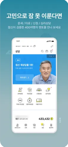 - 전문가와 실시간 전화상담 가능400명 이상의 전문 상담가 중에서 원하는 분을 선택해 실시간 1:1 전화 상담을 받을 수 있습니다. 나만의 운세 상담을 더욱 자세히 들어보세요.