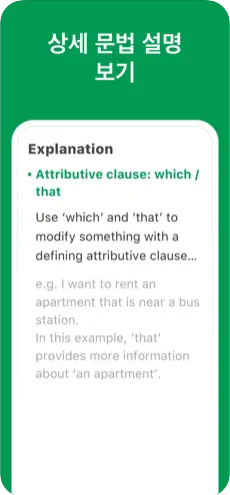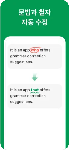 문법 오류를 하나하나 표시해 원본과 수정본을 비교할 수 있으며, 품사 분석과 예문을 통해 자주 범하는 실수를 더 잘 이해하도록 도와줍니다. 반복적인 오류를 예방하고 학습 효과를 극대화할 수 있으며, 외부 자료 검색이 필요할 경우 앱 내에서 바로 검색할 수 있어 편리합니다. - [문법과 언어 감각 향상]