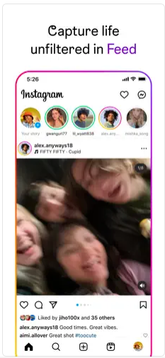 친구들과 소통하며 소식을 공유하거나 전 세계 어디에서든 새로운 콘텐츠를 만날 수 있는 소중한 시간 — Facebook에서 제공하는 Instagram.