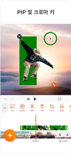 크로마키, 루마퓨전, 배경 합성, 오버레이, 속도 조절, 키프레임 애니메이션 등 다양한 기능을 갖춘 전문적인 동영상 편집기입니다.