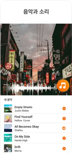 - 다양한 음악을 활용해 분위기 있는 비디오 제작
